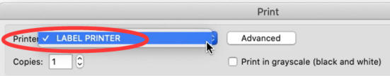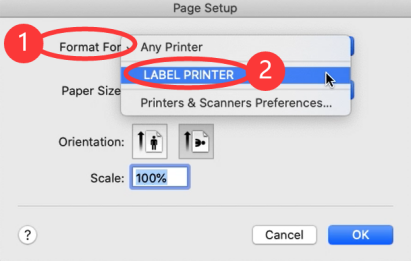 -> Select Printer from "Format For: " -> Select label size from "Paper Size: "